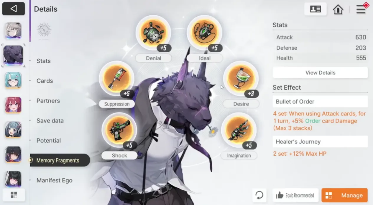 Coltiva la simulazione a difficoltà 5 quanto basta per ottenere un set di attacco per il tuo principale infliggente danni e un set di difesa/HP per i tuoi supporti. Il tuo obiettivo è solo attivare i bonus impostati e completare la missione da 12 corse. Non coltivare eccessivamente qui.