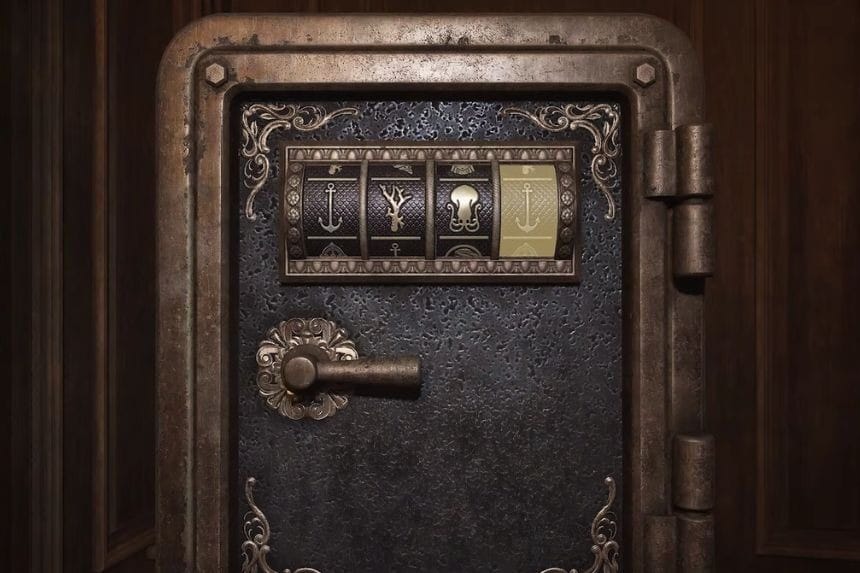 Nel Capitolo 1: Gli Amanti della Fiamma Eterna, quando raggiungi La Perla Oculta, troverai la prima cassaforte nella stanza d’ingresso. Per aprirlo è necessario trovare gli indizi nascosti nelle stanze vicine. Controlla le stanze A, F, B ed E.