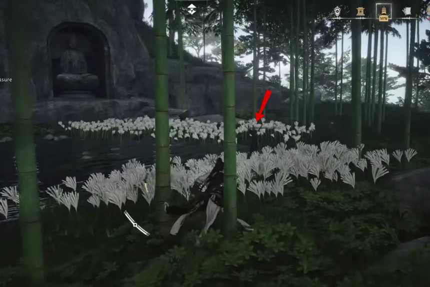 Questa nuova mappa parla di un uccello bianco. Dirigiti verso Bamboo Ridge, all’estremità est della mappa. Qualsiasi punto di viaggio veloce nelle vicinanze funziona, ma usare quello vicino alla fiamma è il più veloce.