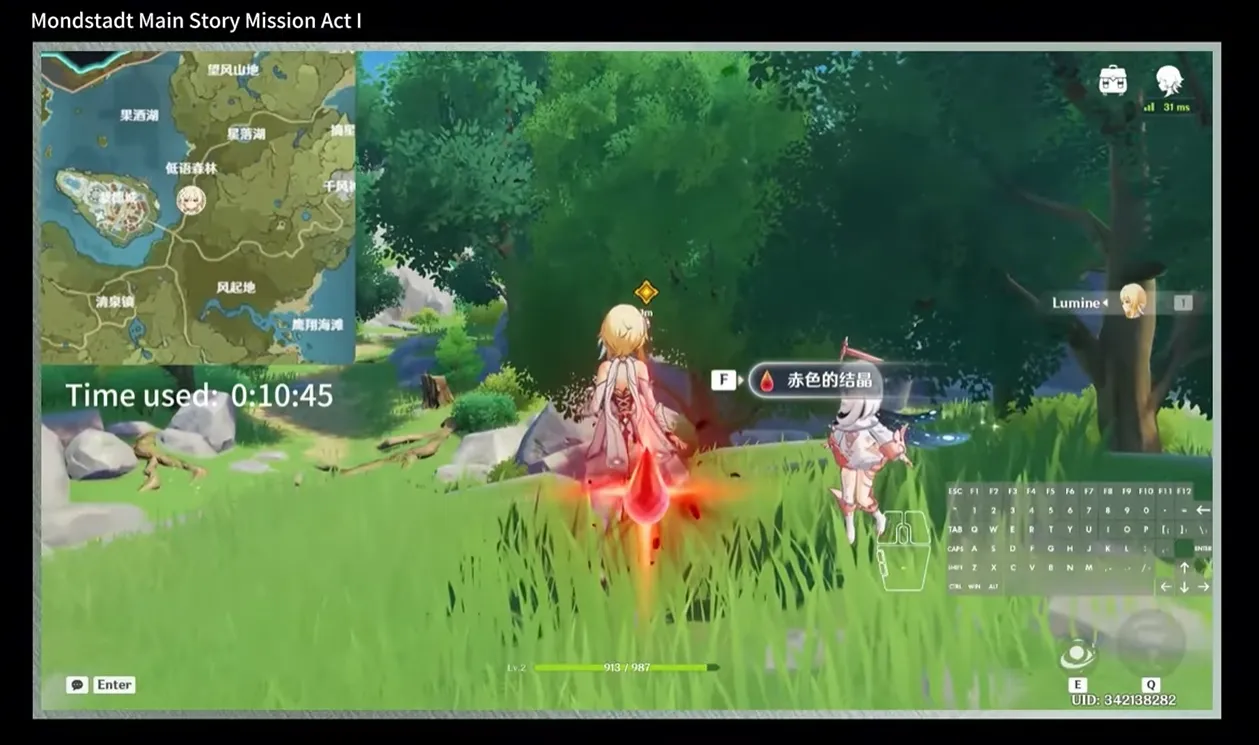 Completamento di missioni di ore: Il risultato più sorprendente è la sua capacità di completare in modo autonomo l’intera trama principale in tre atti di cinque ore della regione di Mondstadt di Genshin Impact, raggiungendo un’efficienza pari a quella dei giocatori umani esperti.