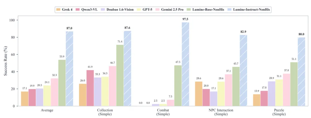 - Versatilità eccezionale: a differenza delle tradizionali IA specializzate che si basano sui dati di gioco, Lumine interagisce con qualsiasi gioco attraverso il “ragionamento visivo”. Non richiede agli sviluppatori di giochi di fornire API interne, ha meno probabilità di essere identificato come “bot” e può adattarsi a più giochi con un unico modello. La sua bassa barriera all’ingresso, l’elevato realismo e la protezione della privacy lo rendono una soluzione altamente competitiva.