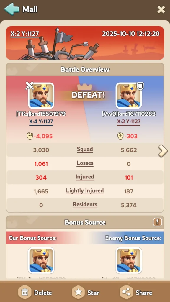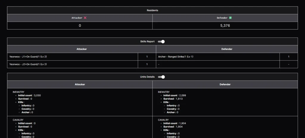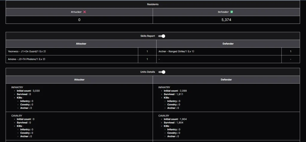 Ho eseguito alcuni test sui miei mini account per mostrare come si combinano i joiner di Letalità e Attacco. Ho mantenuto le statistiche e le truppe esattamente le stesse sia per l’attaccante che per il difensore: l’unica cosa che ho cambiato sono stati i joiner.