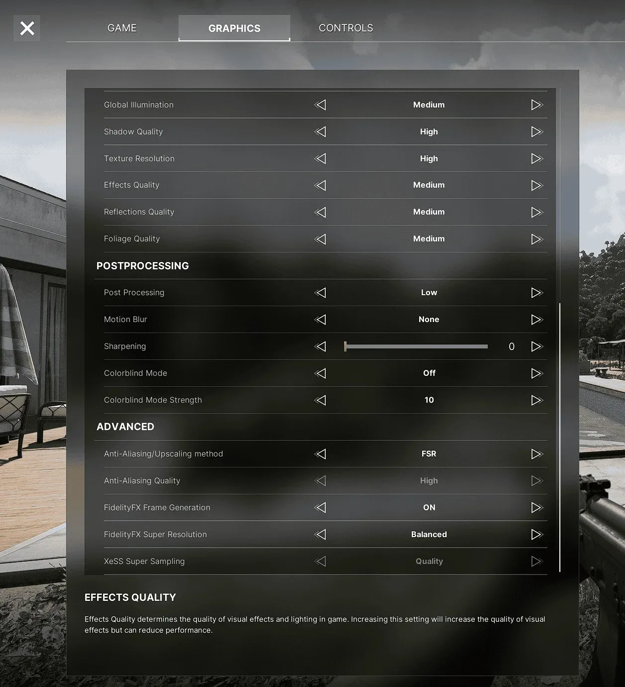 Per un gioco con ambienti aperti e scontri a lungo raggio, la distanza è importante. Impostarlo su un valore troppo basso significa che i bersagli appaiono dal nulla a distanze in cui ti aspetteresti di avere un preavviso. Il materiale originale lo identifica come un equilibrio tra fedeltà visiva e frame rate: trova l’impostazione più alta che il tuo sistema può sostenere senza scendere al di sotto del frame rate target.
