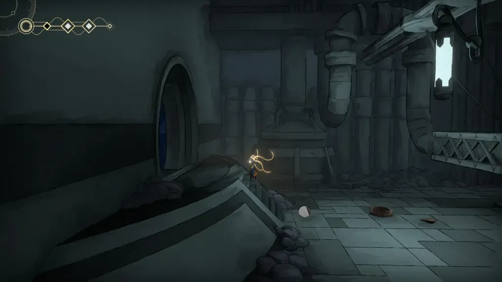 Il personaggio si sveglia in una stanza buia su un tavolo operatorio. La mappa per ora non è disponibile. Muoviti a sinistra per iniziare l’esplorazione, quindi vai brevemente a destra per rompere un mucchio di spazzatura per Nacre.