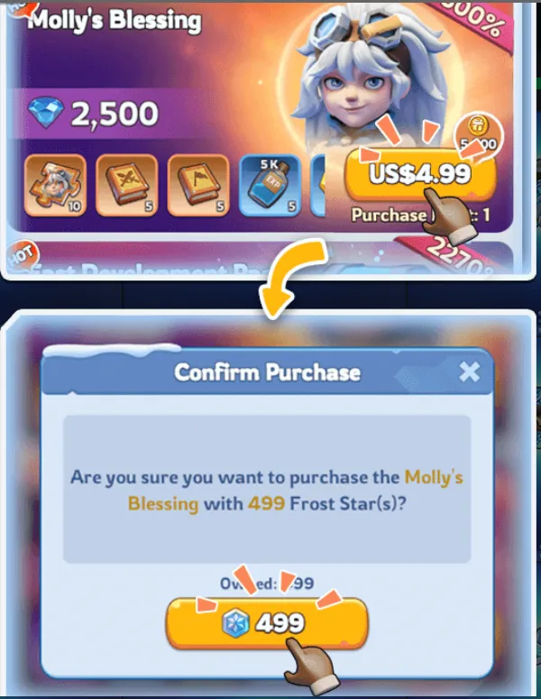 - Una volta confermato l’acquisto, ti verrà scalato l’importo corrispondente in Frost Stars e riceverai immediatamente il contenuto del pacchetto o dell’offerta.