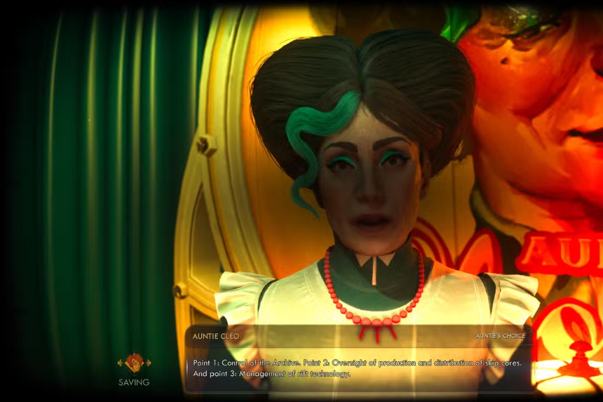 Scegli l’opzione di dialogo che suggerisce la proprietĂ condivisa della tecnologia Rift. Quando la zia si oppone, assicurale che la collaborazione non è debolezza, è protezione reciproca. AmmetterĂ che la proprietĂ parziale è meglio di niente e metterĂ a punto l’alleanza. Se hai seguito questa strada, l’accordo di pace avrĂ successo ed entrambe le fazioni riconosceranno il tuo miracolo diplomatico.