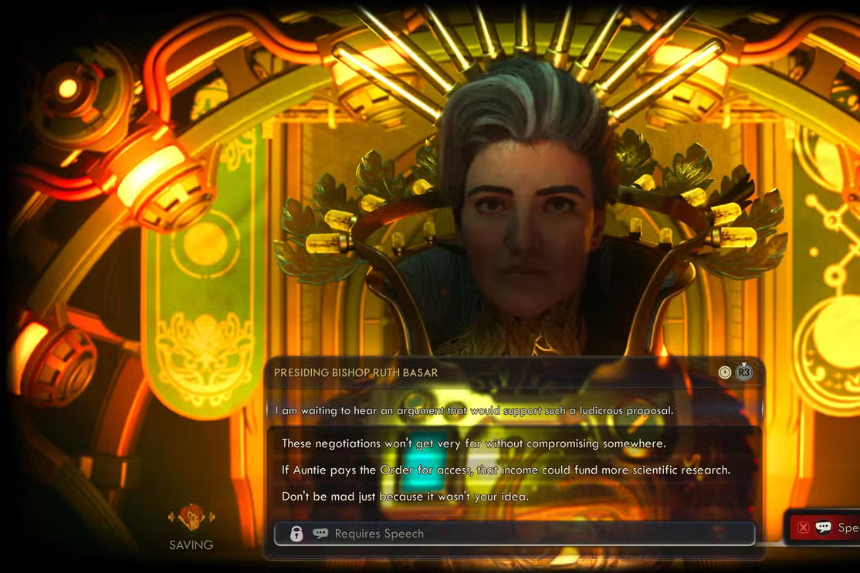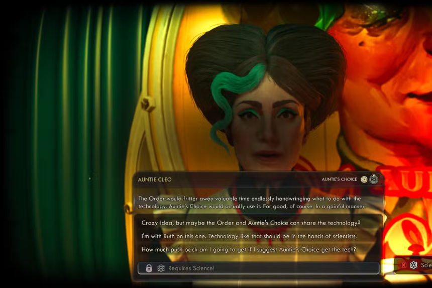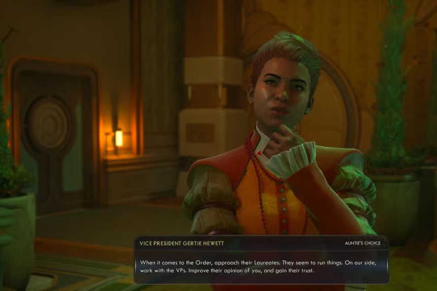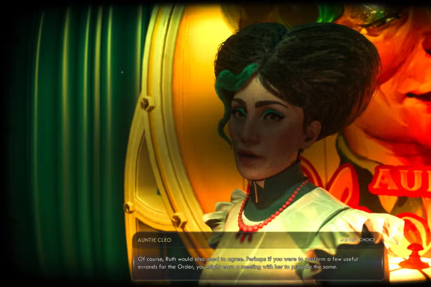Zia Cleo si lascia convincere facilmente; è aperta alla diplomazia e accetta di ospitare l’incontro a bordo della sua nave, la Undisputed Claim, virtualmente, ovviamente. Ruth Basaar, invece, è piĂ¹ resistente. Se non riesci a superare i controlli di Persuasione o Menzogna, seleziona l’opzione di dialogo che suggerisce che l’Ordine è preoccupato di essere sconfitto nei colloqui.