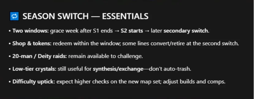 ·Contenuti e difficoltà legacy: è stato confermato che i raid da 20 giocatori della stagione precedente rimarranno disponibili per la sfida, ma ai giocatori è stato consigliato di aspettarsi un aumento significativo della difficoltà sulle nuove mappe, richiedendo aggiustamenti alla costruzione.
