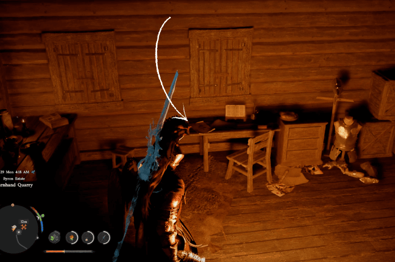 All’interno della casa c’è un studio tavolo su cui giace il Pezzo della mappa del tesoro 11. Secondo il pezzo di mappa, il tesoro si trova in un luogo dove i binari della ferrovia conducono all’interno di un tunnel. Dato che ho già visitato Deserto Cremisi a questo punto del gioco sapevo esattamente dove cercare il tesoro. Quindi, mi sono diretto verso il deserto cremisi e ho iniziato a cercare il punto di riferimento mostrato sul pezzo di mappa.