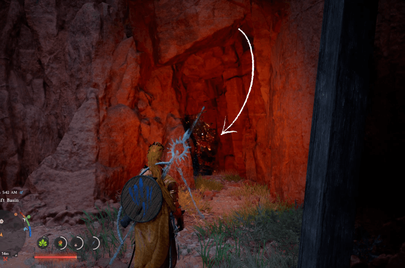 Fai la tua strada discesa attraverso la valle come mostrato nell’immagine sopra e vedrai l’ingresso di una grotta bloccata da una roccia. Usa il tuo Palmo della forza focalizzato abilità inserendo il Messa a fuoco modalità sulla roccia, questo romperà il blocco e potrai farti strada all’interno della grotta.