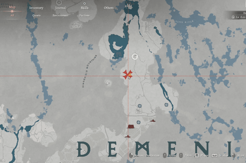 Dirigiti verso questa posizione contrassegnata sulla mappa mostrata nell’immagine sopra che è nord di Demeniss verso il Guglia dell’Elevazione.