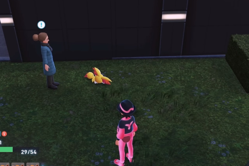 Dirigiti a nord-ovest della piazza centrale, vicino al canale e all’ingresso del distretto di Rouge. Vedrai una donna con un cappotto blu accanto a Fennekin addormentata. Darà il via alla missione “Guarisci, Fennekin” quando le parlerai.