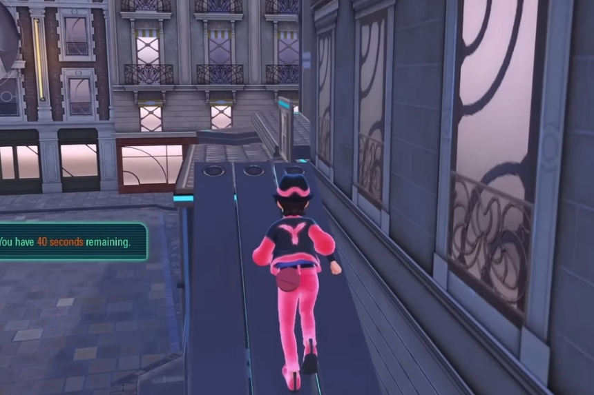 Dirigiti verso l’angolo nord-est della mappa verso un cantiere pieno di impalcature. Il direttore del sito ti dirà che Froakie ha stabilito tempi record su tre percorsi a ostacoli. Accetta la sfida e inizierai la missione “Una sfida da Froakie”.