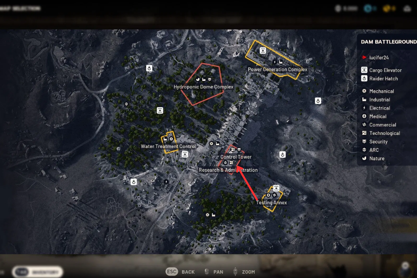 Una volta ottenuta la chiave, dirigiti alla Torre di controllo, situata vicino al centro della mappa Dam Battlegrounds, la Sala dello staff si trova all’interno della sezione Ricerca e amministrazione della torre.