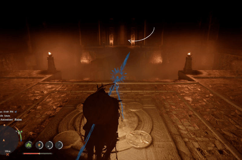 Dopo aver attraversato la porta, raggiungerai Antiche rovine di Demeniss. Devi dirigerti sul lato opposto del corridoio ma ci sono trappole. Puoi usare l’abilità di salto preciso per saltare sulle piattaforme di fronte a te e superarle, ma ti consiglio di usare il palmo della forza aerea per guadagnare quota e planare verso la destinazione senza preoccuparti delle trappole.