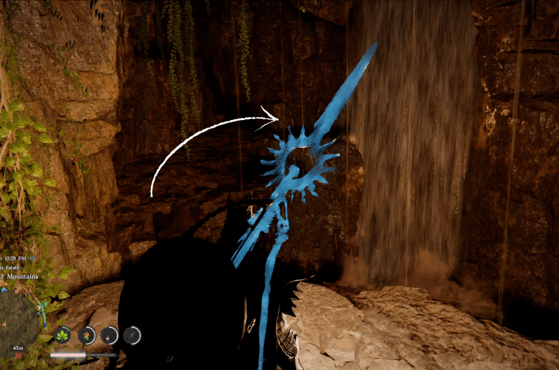 Dopo essere entrato nella grotta, raggiungerai una cascata all’interno della grotta, segui il sentiero accanto a te per arrivare dietro le cascate. Segui il percorso dietro la cascata e raggiungerai una porta, cammina verso la porta e il personaggio la spingerà automaticamente.