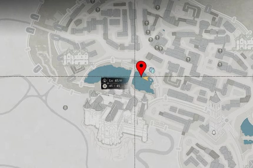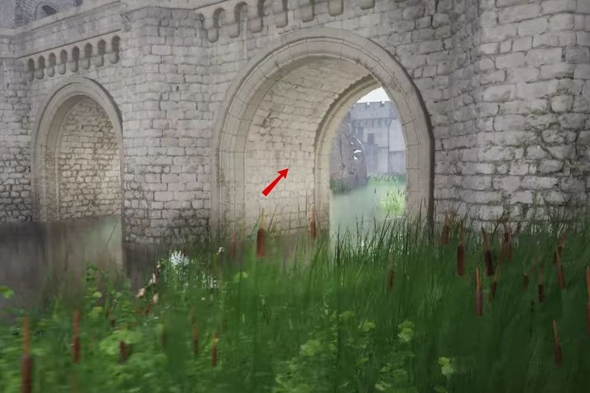 Quando arrivi nella regione di Demeniss, puoi individuare questo posto all’interno della città principale. Quando arrivi al punto di viaggio veloce, vai verso il ponte sull’acqua. Saltate nell’acqua sotto il ponte. Nuota fino alla sezione centrale dell’arco di pietra nell’acqua. C’è un piccolo punto dove puoi arrampicarti sul muro.
