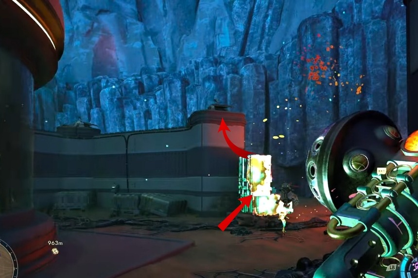 Troverai alcune scatole impilate sulla tua destra, usale per salire in cima alla stazione e troverai un’apertura attraverso la quale potrai entrarvi. Una volta dentro, vai al computer e completa il processo di calibrazione selezionando “Ricalibra Torre Lightning”.