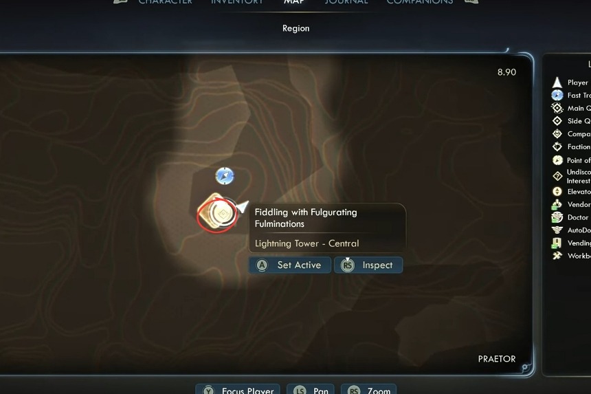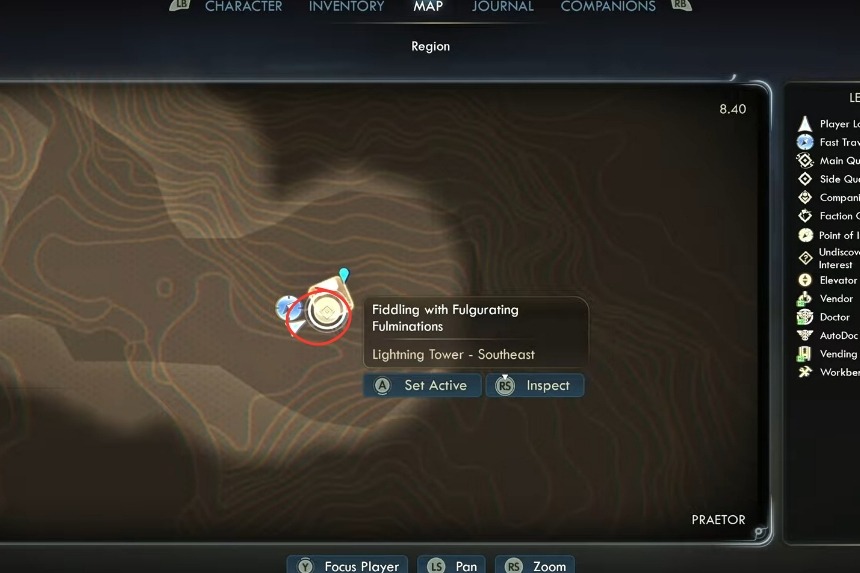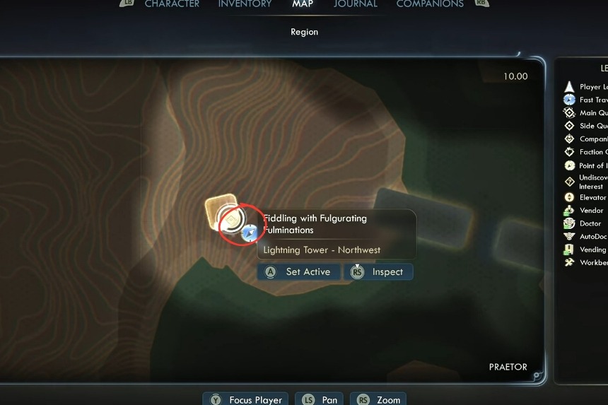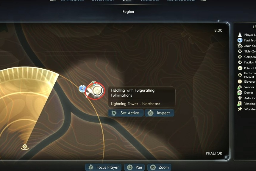 Raggiungi la Torre del Fulmine – Sud-Est a Praetor, entra nella stazione e, sul computer, seleziona “Ricalibra la Torre del Fulmine” per completare la calibrazione e il gioco è fatto.