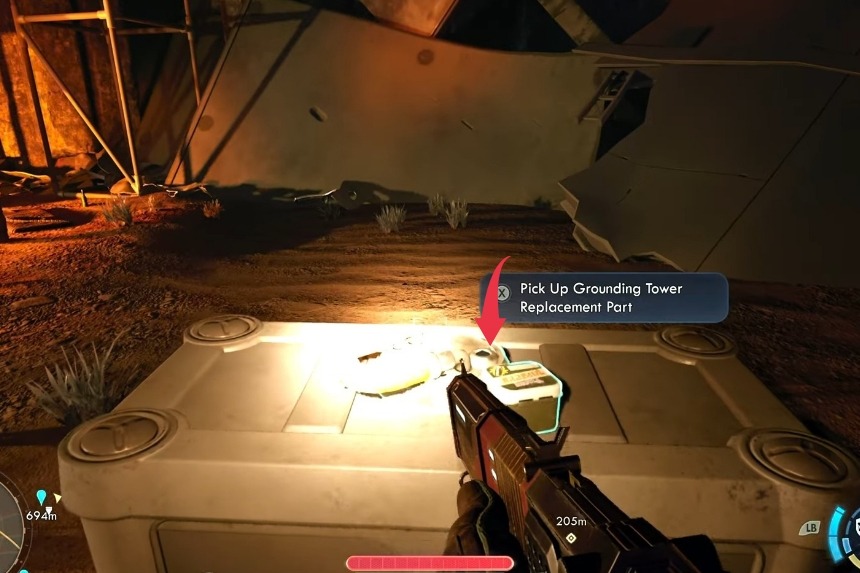 Dovrai quindi dirigerti verso lo Scrapper Camp e investigare. Lì troverai la parte di ricambio sopra una scatola ben visibile. Prendilo e torna alla torre e inserisci con attenzione la parte mancante all’interno del pannello. Ora, sul computer, prova a ricalibrare nuovamente la torre dei fulmini e vedrai che la calibrazione viene completata.