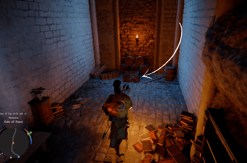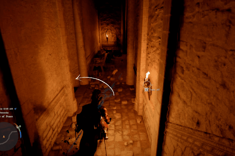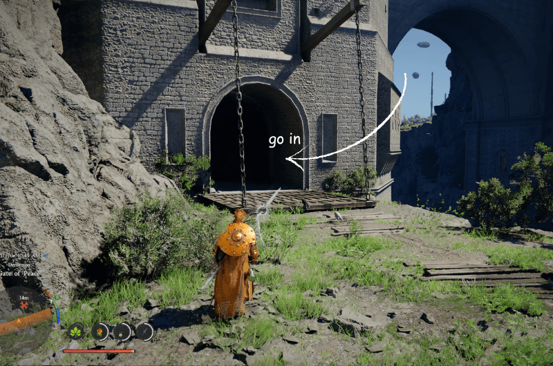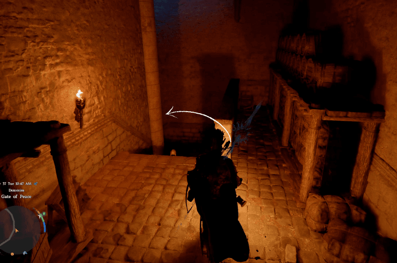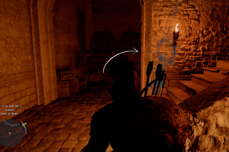 Dirigiti verso la posizione contrassegnata mostrata nell’immagine sopra, raggiungerai il Porta della Pace In Demenis. Vedrai un’entrata nella Porta della Pace nel punto esatto contrassegnato. Entra e prendi a sinistra.