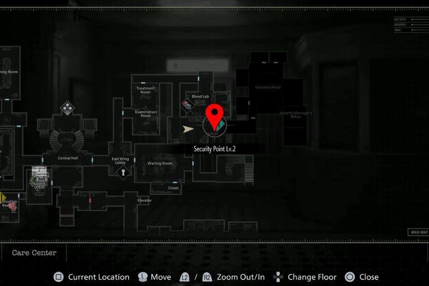L’unica porta di Livello 2 nell’area è la porta del Reparto di Isolamento. Apri la porta e poi prosegui attraverso il reparto di isolamento fino ad arrivare all’ufficio del responsabile della sicurezza.