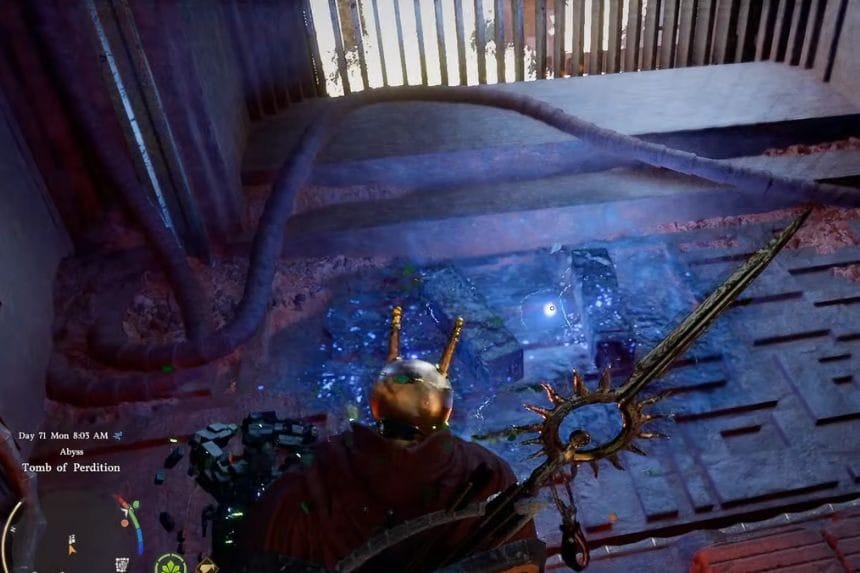 Per arrivare al puzzle dell’Abisso della Tomba della Perdizione, attraversa prima il Passaggio della Malizia, completando il puzzle. Successivamente, attraversa le porte triangolari sul retro della stanza, entrando nell’area successiva. Proseguite lungo il percorso fino a raggiungere il teletrasporto, quindi entrate nella tomba. Vai dritto verso i grandi nemici, più in profondità nella stanza, finché non trovi il prossimo viaggio veloce.