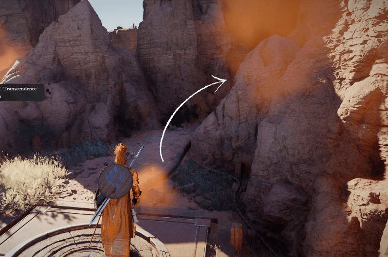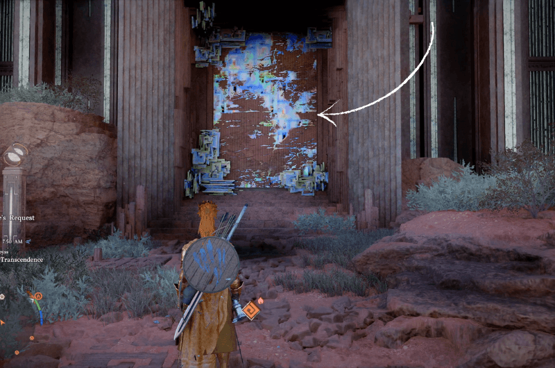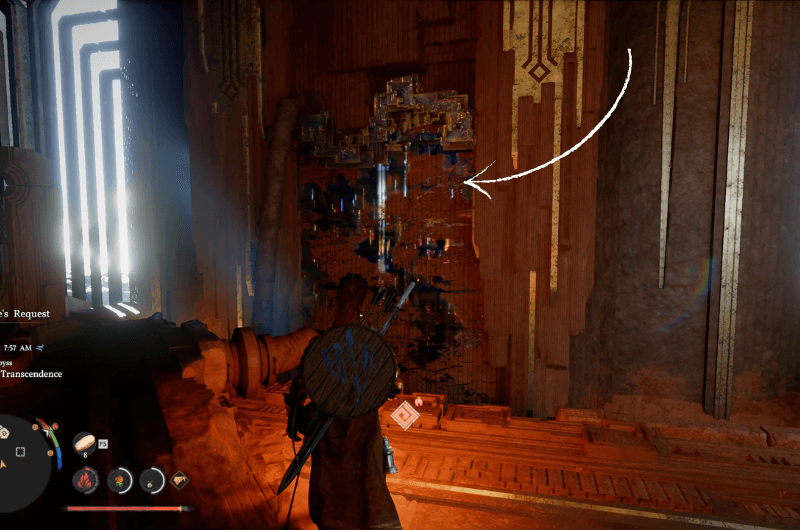 Dopo aver attivato il Nesso dell’Abisso al Santuario della TrascendenzaTesta Giusto attraverso lo stretto sentiero per arrivare al Santuario della Trascendenza camera solo per scoprire che è stato sigillato da a parete di bismuto.