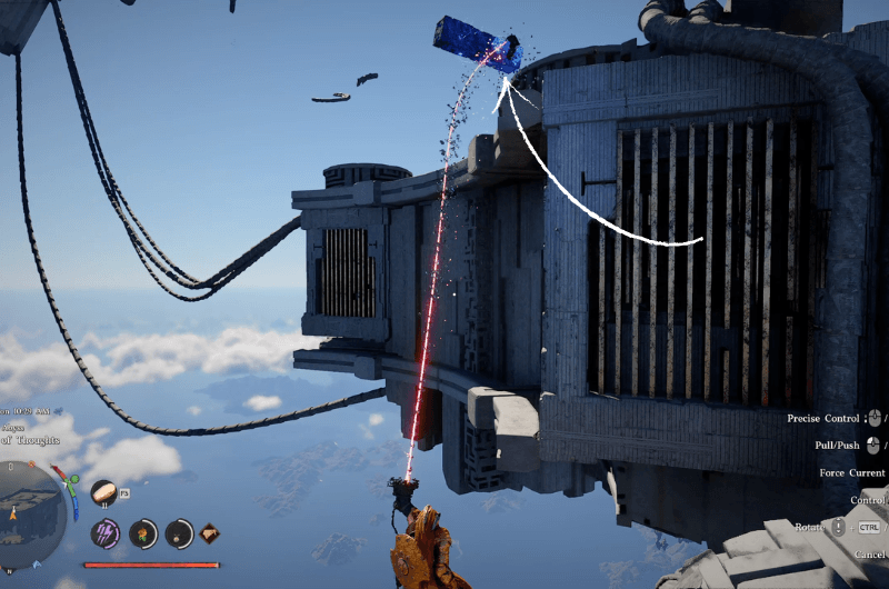 Troverai il batteria nascosto all’interno di uno spazio ristretto sotto la struttura. Utilizzo Forza assioma sulla batteria per spostarla verso la zona disattivata turbine eoliche che si trovano sulla struttura accanto alla struttura dove hai trovato la batteria, come mostrato nell’immagine sopra.