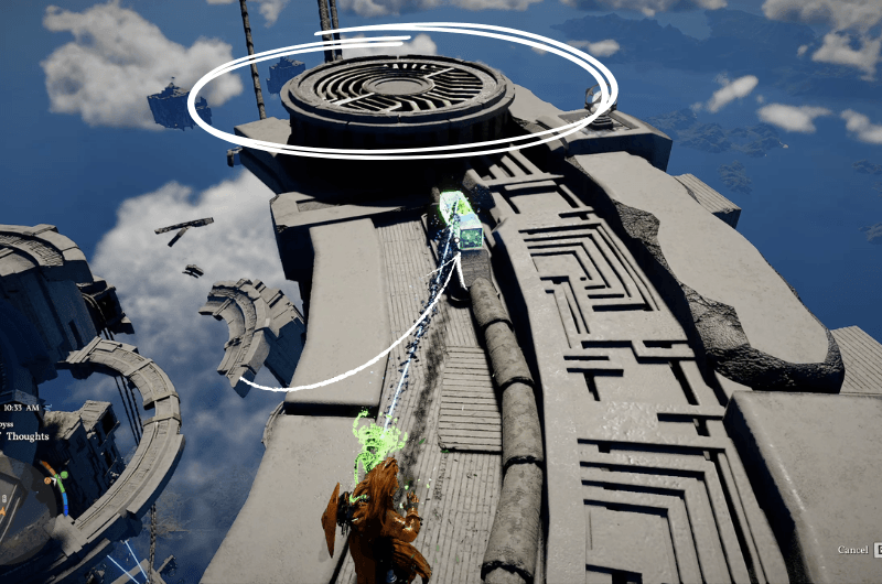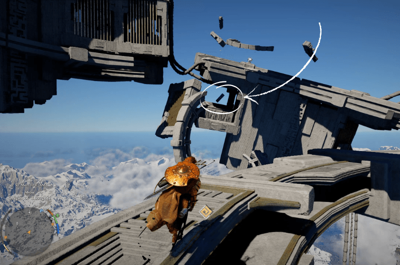 Devi navigare verso l’alto utilizzando un’altra serie di turbine eoliche e quando sei in cima, raggiungi evidenziato piattaforma mostrata nella seconda immagine sopra.