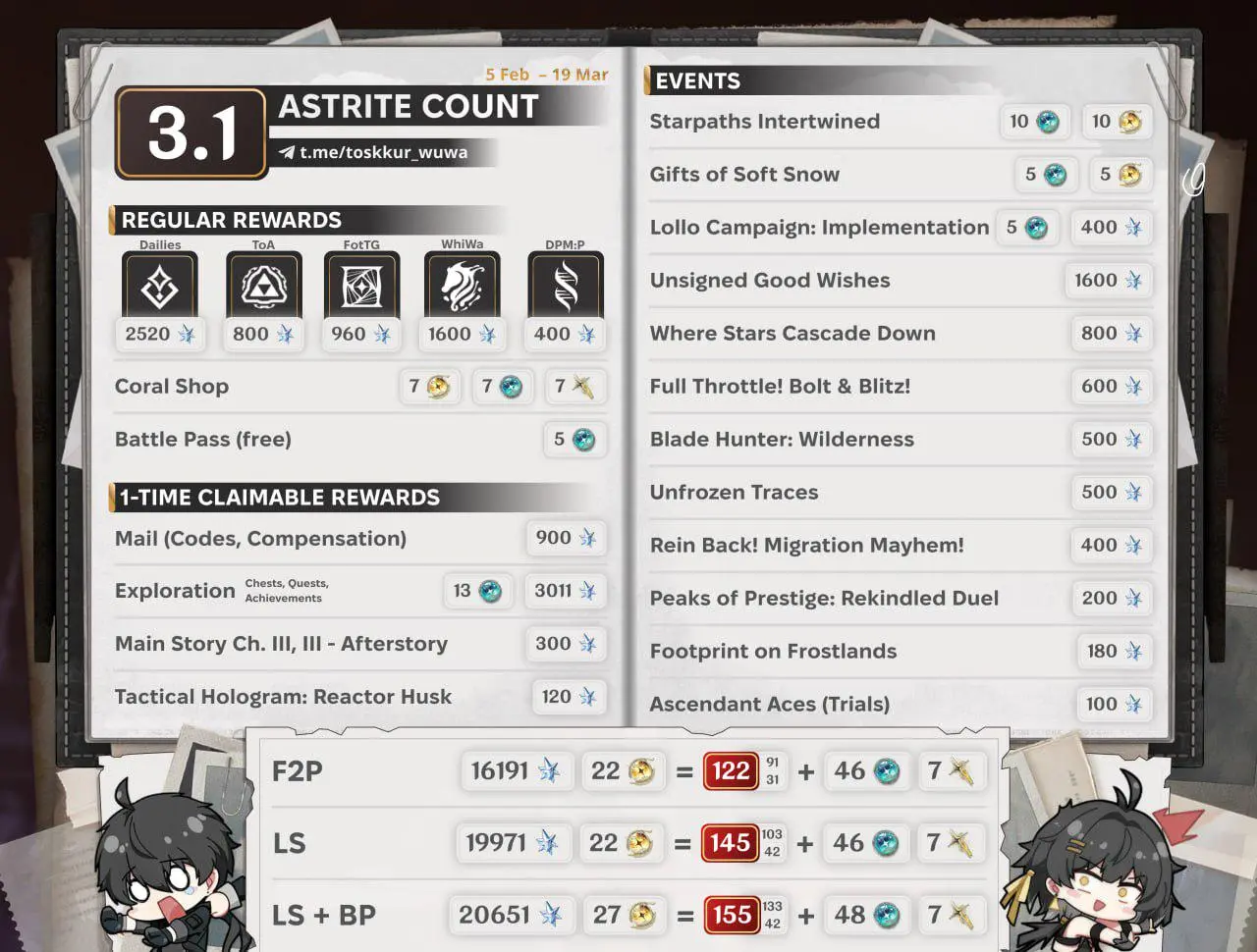 Ora analizziamo tutte le fonti di questi premi Astrite!