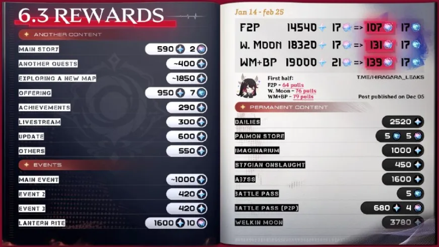 Poiché questa patch copre il Capodanno lunare, è ricca di premi di ringraziamento. Tuttavia, tieni presente che la prima metà di solito rappresenta circa il 60% del totale dei primogem (circa 64 estrazioni per F2P). Se il personaggio che desideri è sul banner della Fase 1, dovrai macinare velocemente quella nuova mappa.