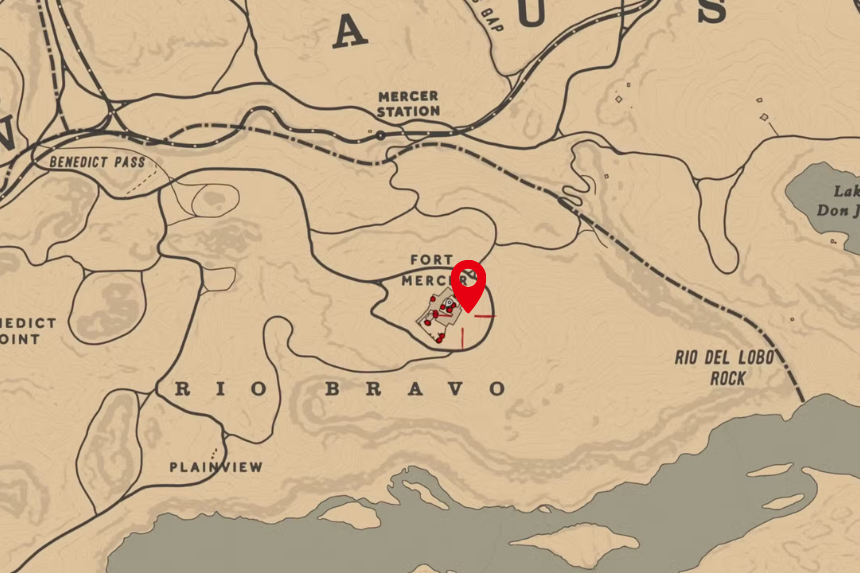 Dirigiti a sud di Armadillo e incontrerai Fort Mercer, controllato dalla banda Del Lobo. Questo forte diventa famoso più tardi nel 1911 come base di Bill Williamson, ma per ora i Del Lobo lo usano per nascondere armi, bottini e qualsiasi altra cosa possano rubare.