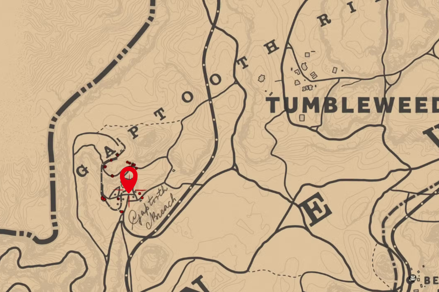 A ovest di Tumbleweed c’è Gaptooth Breach, un altro importante ritrovo di Del Lobo. Questa area mineraria è grande e piena di nemici, dandoti molto terreno da coprire mentre li elimini.