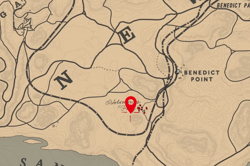 Appena a sud di Benedict Point si trova Solomon’s Folly. Potrebbe non sembrare impressionante a prima vista, ma nasconde una quantità sorprendente di bottino grazie alle operazioni segrete dei Del Lobo qui.