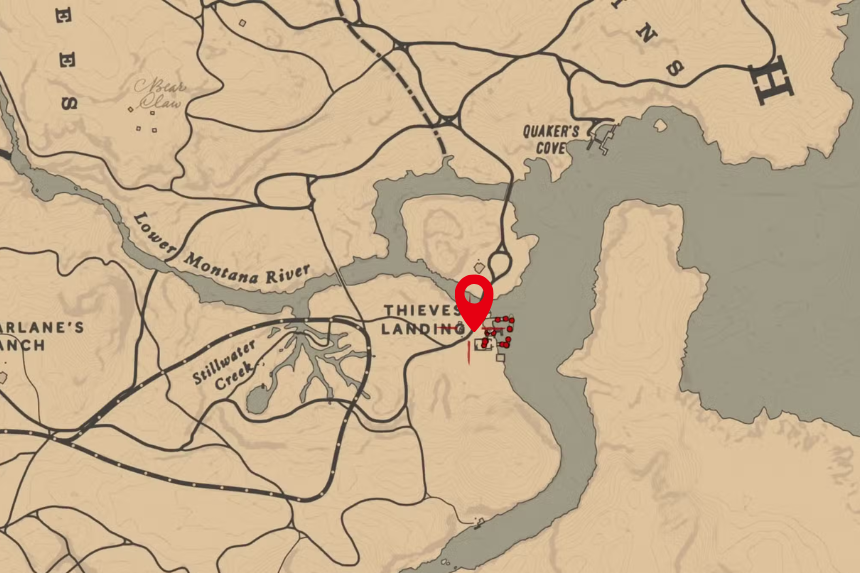 A sud di Blackwater, proprio al confine, c’è Thieves’ Landing, un insediamento completamente invaso dalla banda Del Lobo. L’hanno trasformato in un centro per i loro affari criminali, e l’intero posto sembra ostile nel momento in cui arrivi.