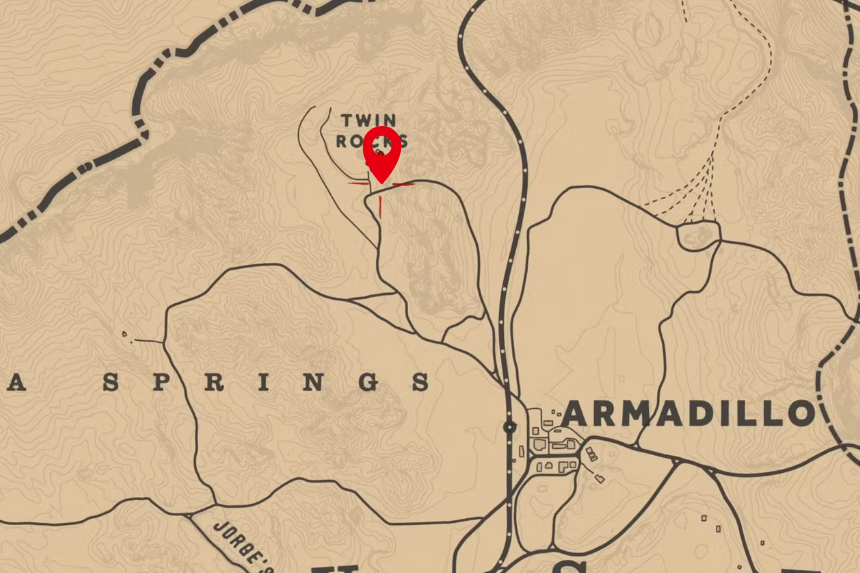 A nord di Armadillo si trova Twin Rocks, un piccolo nascondiglio Del Lobo nascosto tra le formazioni rocciose. Non è una base enorme, ma la banda la usa comunque per controllare il territorio nell’area.