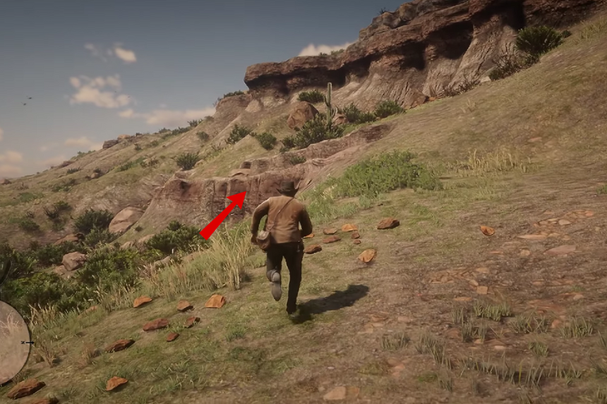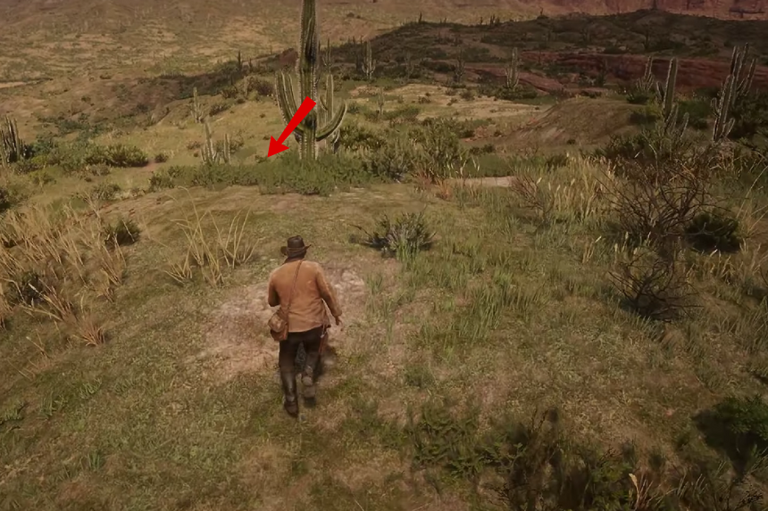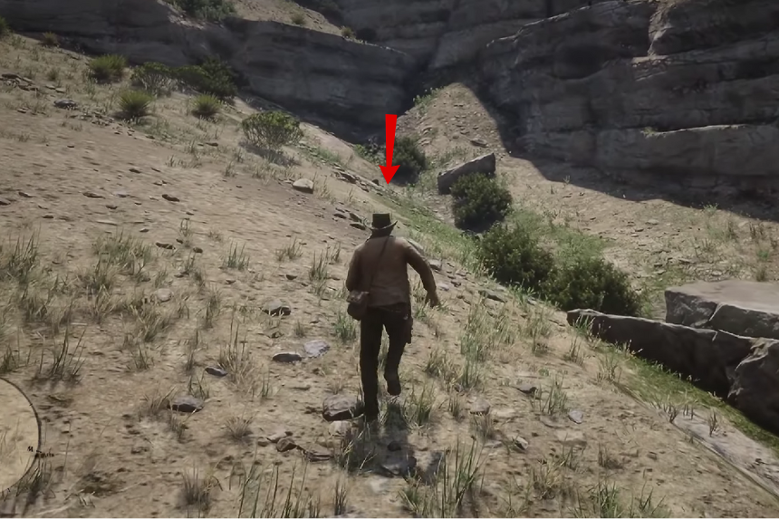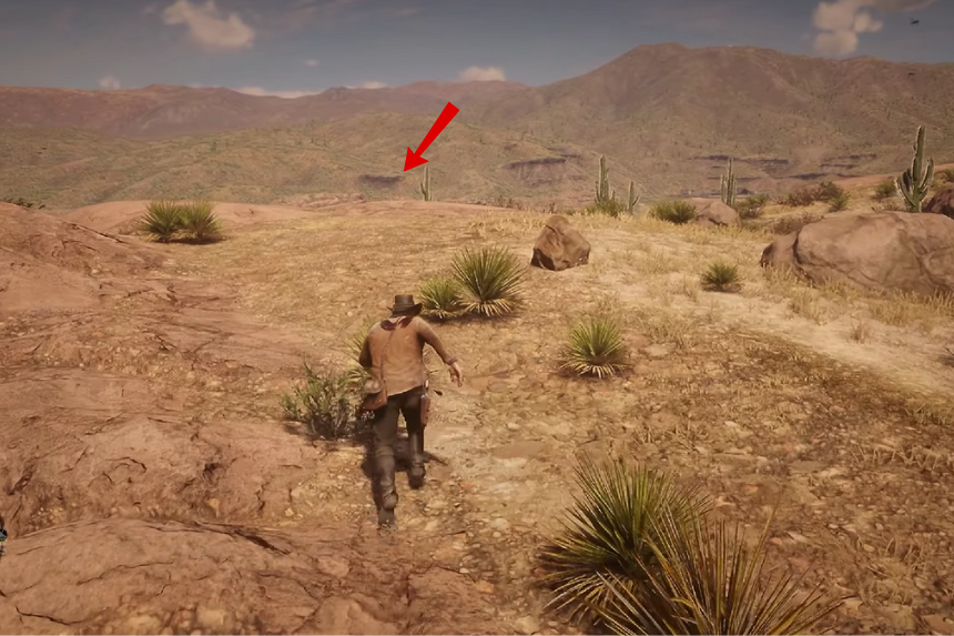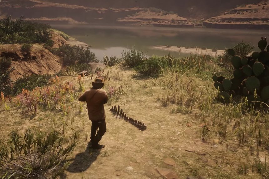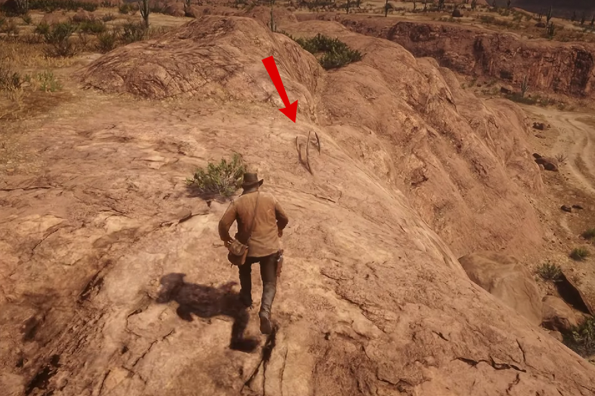 Vai verso ovest di Rattlesnake Hollow. Troverai l’osso di dinosauro in fondo alla collina, incastonato in una roccia infossata vicino a un cactus.