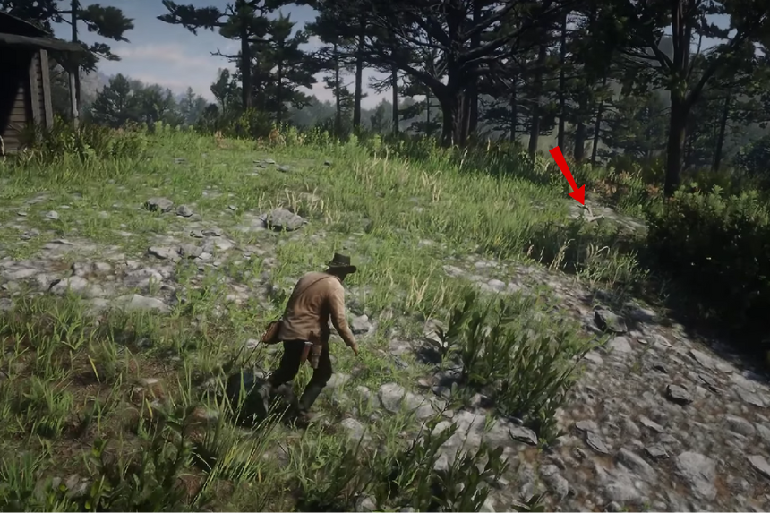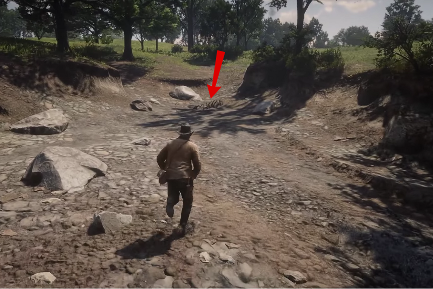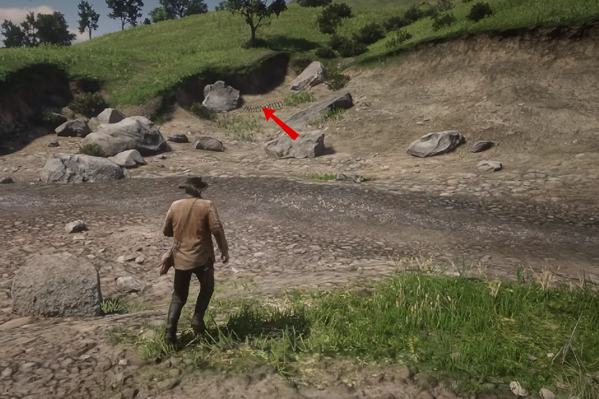 Andate verso il nord della Big Valley. Qui, devi scendere dalla montagna. Muoviti verso la foresta e troverai l’osso di dinosauro sul sentiero.