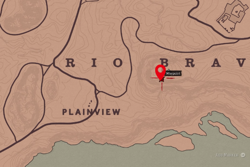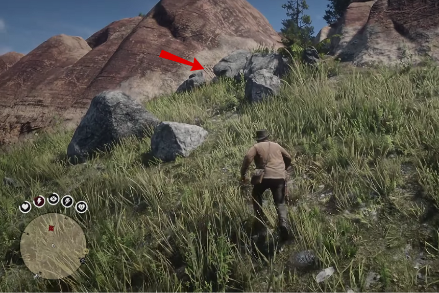 Vai verso sud del Downes Ranch. Qui troverai una grande montagna. Ai piedi della montagna troverai l’osso di dinosauro incastonato nella roccia.