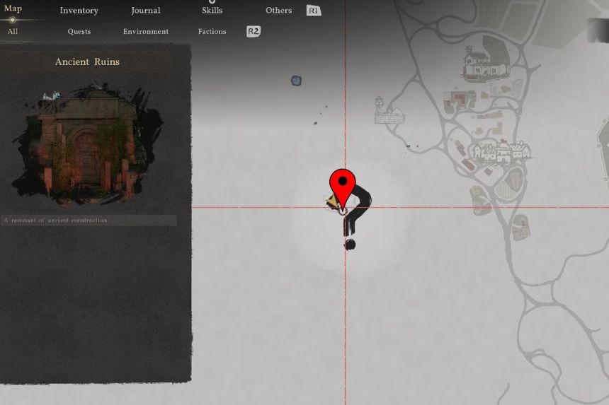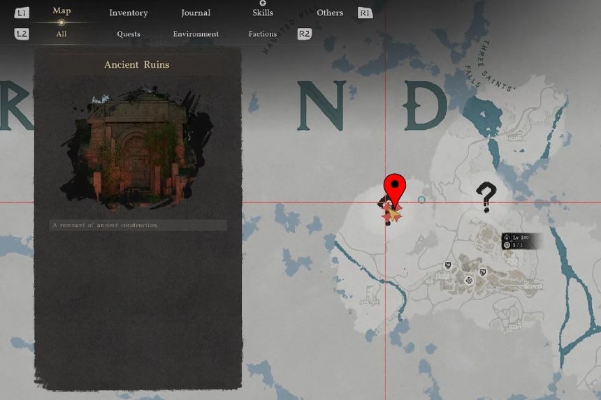 Queste rovine sigillate si trovano nelle colline serpeggianti del deserto cremisi, a nord-ovest della città di Hernand. Per entrare nelle rovine, devi usare Presa della Natura sul cancello di pietra che blocca l’ingresso.