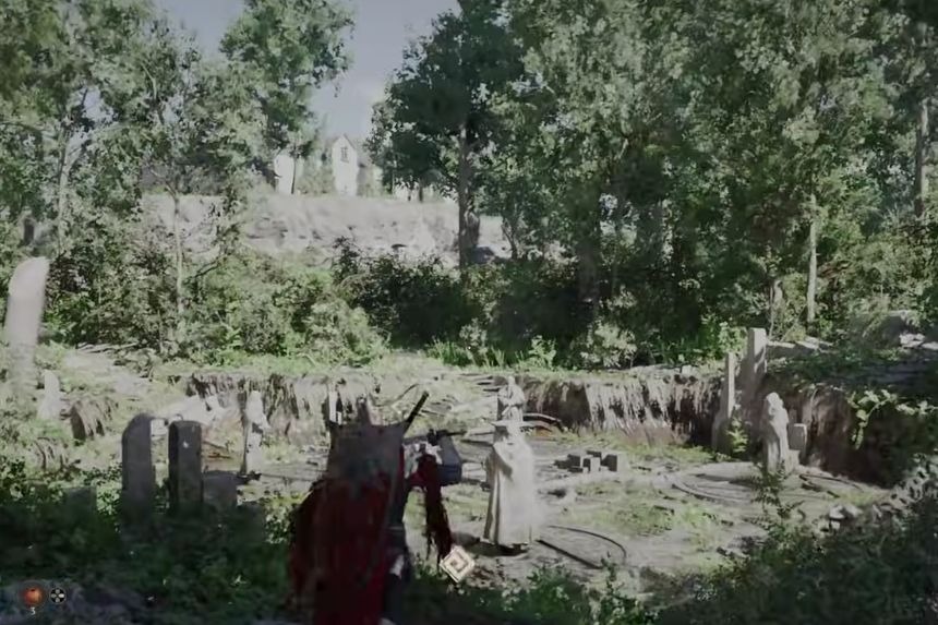 Puoi trovare la capanna del cacciatore del deserto cremisi nella posizione della capanna del cacciatore nella regione delle colline infestate, a nord-ovest di Hernand City. Per risolvere il puzzle del cimitero della Capanna del Cacciatore del Deserto Cremisi, devi accendere tutte le lanterne di pietra attorno al cimitero.