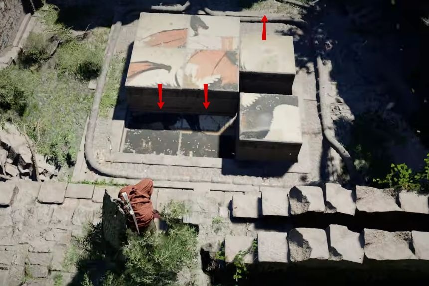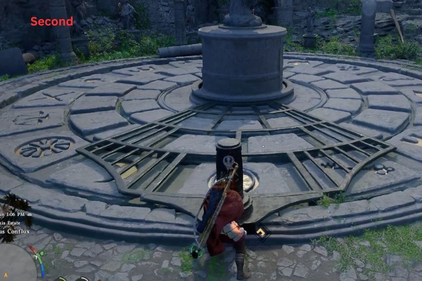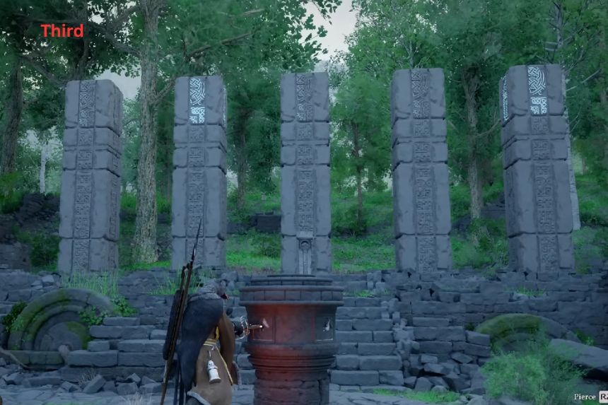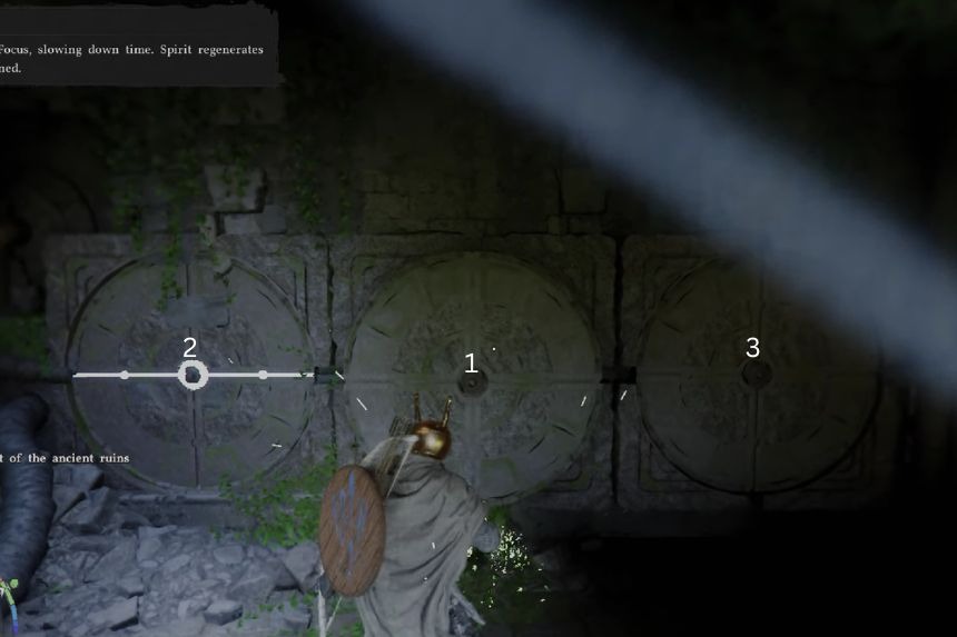Quando entri nelle rovine, devi usare Focus Palm sui grandi pulsanti sul pavimento in modo che rimangano premuti contemporaneamente. Per risolvere questo enigma, devi premere i quadranti circolari nel seguente ordine: il quadrante circolare centrale, il quadrante circolare sinistro e il quadrante circolare destro. Una volta che i pulsanti saranno nella posizione corretta, l’Abyss Cresset si sbloccherà .
