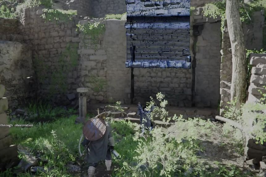 Per prima cosa, estrai la spada e rifletti la luce sui rampicanti per bruciarli. Una volta ripulite le liane, inserisci il piccolo pezzo del puzzle nello slot corrispondente usando la tua abilità “Pugnalato”.