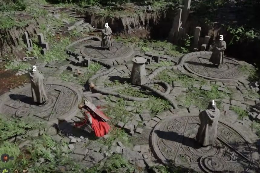 Questo puzzle della Crimson Desert Drakesfall Gorge si trova su un altopiano vicino all’accampamento dei soldati Hernand, lungo il confine di Demeniss. Per iniziare il puzzle, devi stare sulla lastra di pietra al confine dell’area. Questo avvierà il puzzle e le statue dei soldati alzeranno le loro spade.