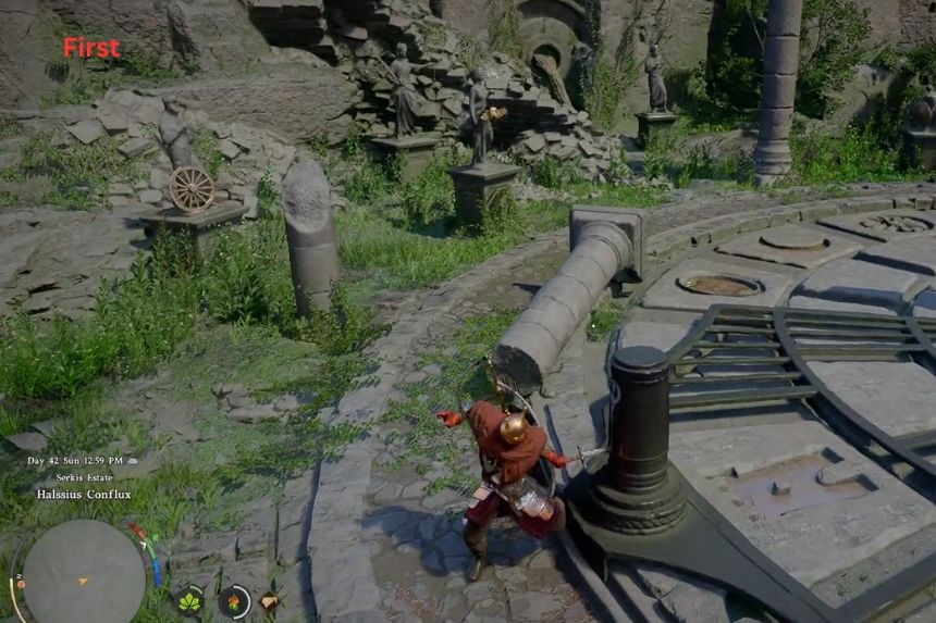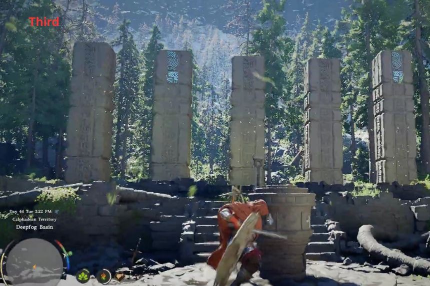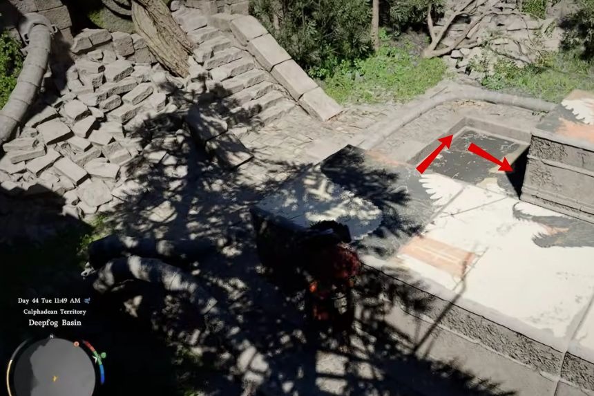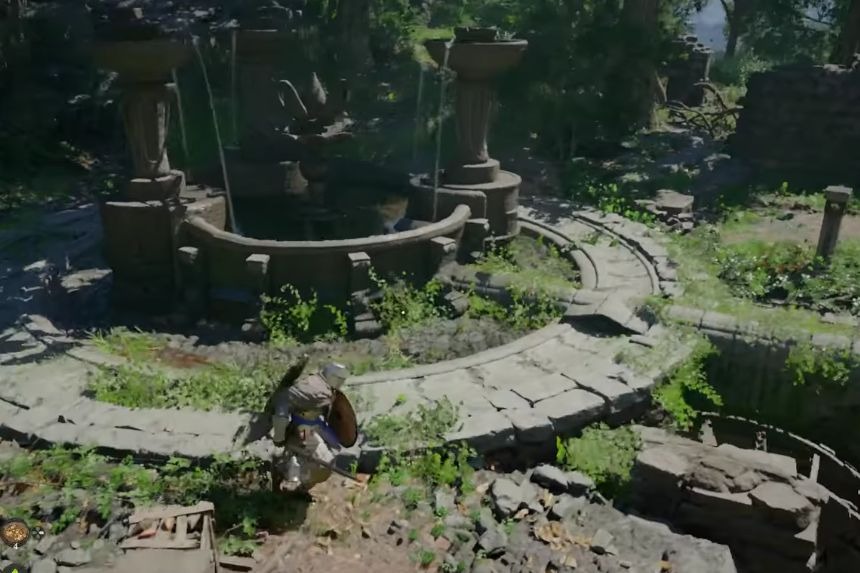 Il puzzle delle rovine della foresta di Arboria del deserto cremisi si trova vicino a tre fontane nelle rovine. Le fontane stanno attualmente spruzzando acqua verso l’esterno ed è necessario ruotarle in modo che l’acqua ritorni verso l’interno, verso il centro. Per fare ciò, devi estrarre la tua arma e usare l’abilità “Pugnalata” su di essa.