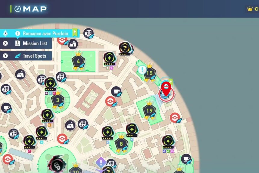 Una volta tornato a Luminopoli, questa missione secondaria diventa disponibile. Dirigiti al quartiere Jaune, in particolare lungo North Boulevard. Vicino all’ingresso del Café Action!, vedrai Frousse in piedi accanto a un Purrloin. Parla con Frousse lì per accettare la missione e iniziare Romance avec Purrloin.