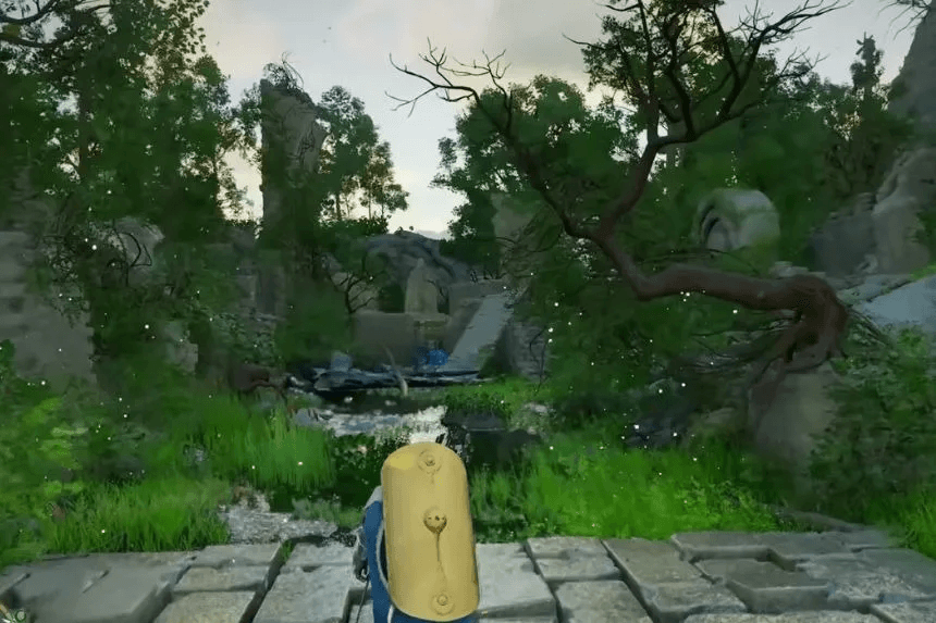 Prima di iniziare il puzzle, fai il primo passo sulla lastra di pietra. Quindi, inizia a muoverti verso la statua, ma assicurati che non sia di fronte a te. Ogni volta che gli occhi della statua diventano blu, devi fermarti e andare avanti solo quando smette di guardarti.