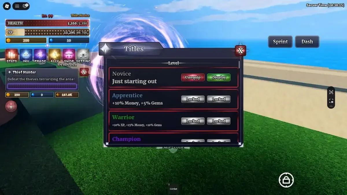Due metodi funzionano. Apri la borsa dell’inventario dal menu a sinistra, fai clic sulla scheda Titoli e premi Equipaggia su qualsiasi titolo che hai sbloccato. La seconda opzione è visitare Sailor Island, trovare l’NPC del commerciante di titoli nello stesso edificio del commerciante di gemme e dell’NPC di tratti ed equipaggiarsi da lì. Un interruttore di visualizzazione separato ti consente di mostrare o nascondere il titolo sopra il tuo personaggio senza rimuovere il potenziamento. Puoi avere un solo titolo attivo alla volta.