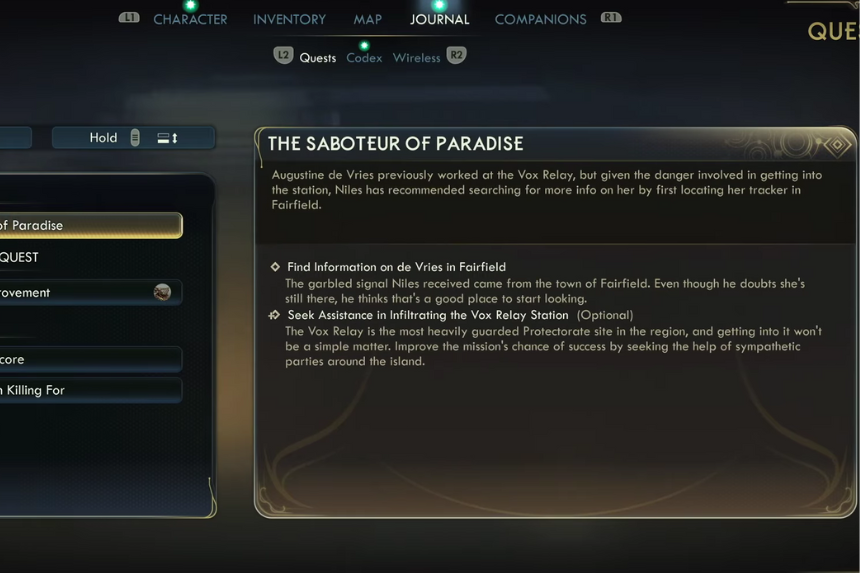 Quando atterrerai per la prima volta su Paradise Island incontrerai la città di Fairfield. Qui inizierai la tua missione principale chiamata “Il Sabotatore del Paradiso”. Il tuo primo obiettivo è raccogliere informazioni su De Vries.